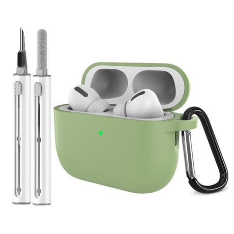 Apple AirPods Pro (3. gen.) Silikon Deksel m. Karabinkrok & Rengjøringspenn - Matcha Green