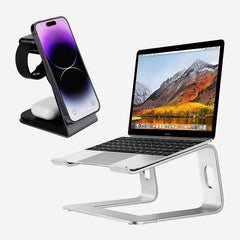 Roterbart Stativ til Bærbar PC med MagSafe Telefonholder og Avtakbar 6-i-1 Hub - Sølv