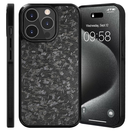iPhone 14 Pro Glitter Plast Deksel - Svart / Stjerner & Måner