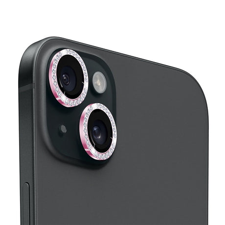 iPhone 15 / 15 Plus Kameralinsebeskyttelse m. Rhinestenen - Pink