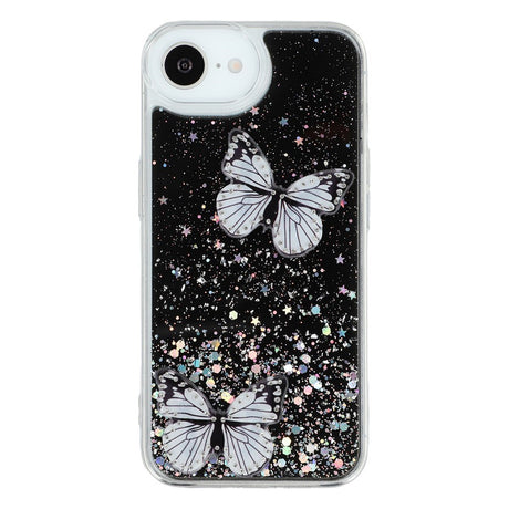 iPhone 16e Fleksibelt Plast Deksel med Sommerfugler - Gjennomsiktig / Svart