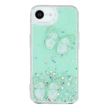 iPhone 16e Fleksibelt Plast Deksel med Sommerfugler - Gjennomsiktig / Grønn