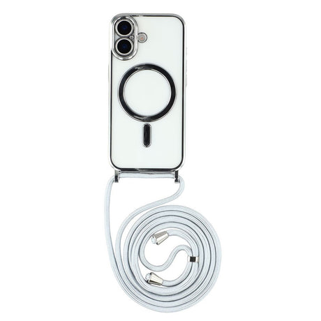 iPhone 17 Fleksibelt Plast Deksel med Justerbar Stropp - MagSafe Kompatibel - Gjennomsiktig / Sølv