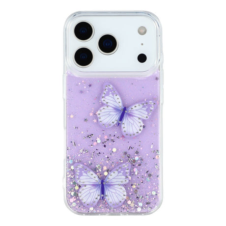 iPhone 17 Pro Fleksibelt Plast Deksel med Sommerfugler - Gjennomsiktig / Lilla