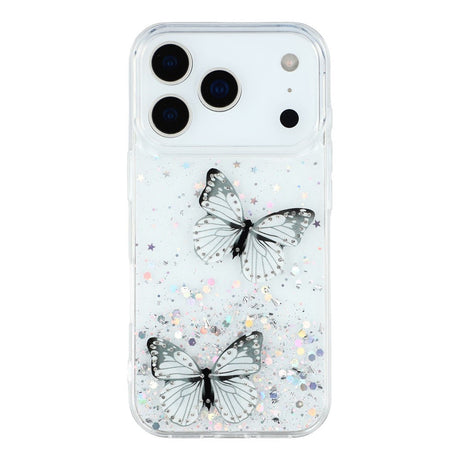 iPhone 17 Pro Fleksibelt Plast Deksel med Sommerfugler - Gjennomsiktig / Svart