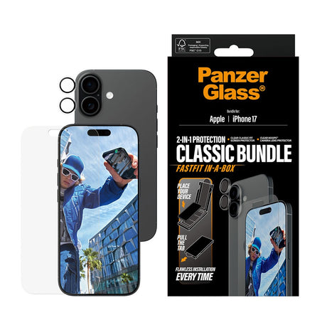 PanzerGlass iPhone 17 2-in-1 Classic Bundle - Skjermbeskytter + Kameralinsebeskytter - Gjennomsiktig