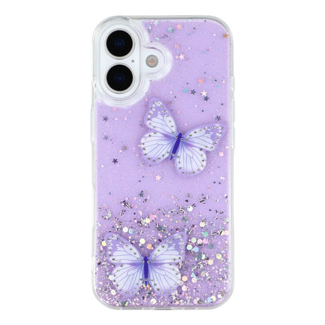 iPhone 17 Fleksibelt Plast Deksel med Sommerfugler - Gjennomsiktig / Lilla