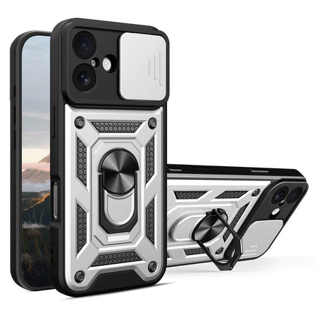 iPhone 17 Hybrid Håndverker Deksel m. Kickstand & Cam Slider - Sølv