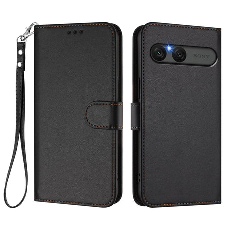 Sony Xperia 10 VII Kunstskinn Flip Deksel m. Kortholder & Stropp - Svart