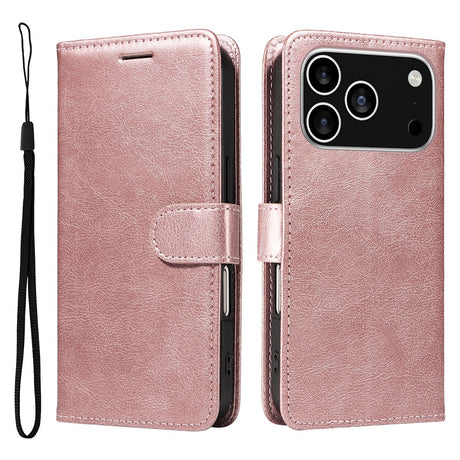iPhone 17 Pro Deksel i Kunstskinn med Lommebok & Stropp - Rose Gold