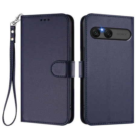 Sony Xperia 10 VII Kunstskinn Flip Deksel m. Kortholder & Stropp - Mørkblå