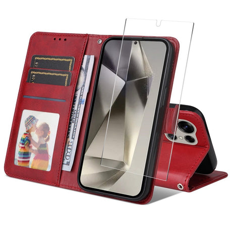 Samsung Galaxy S25 Ultra 2-i-1 Kunstskinn Flip Deksel med Skjermbeskyttelsesglass - Rød