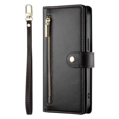 iPhone Air Flip Deksel med Kortholder / Glidelåslomme / Stropp - Svart