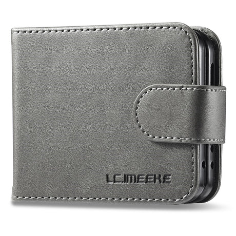 Samsung Galaxy Z Flip7 FE / Flip6 Kunstskinn Flip Deksel m. Kortholder & Ståfunksjon - Grå