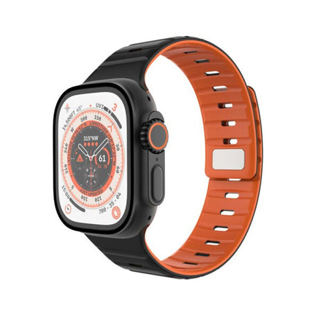 Apple Watch (42/44/SE/45/46/49) Epico Magnetic+ Silikone Klokkereim - Oransje / Svart