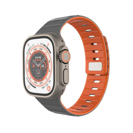 Apple Watch (42/44/SE/45/46/49 mm) Fixed Magnetisk Silikonrem – Grå / Oransje