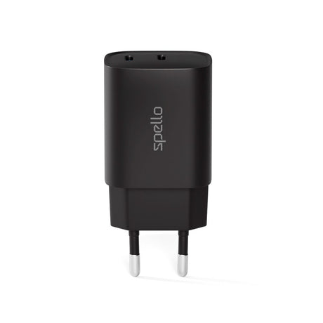Compact 20W Vegglader USB -C / USB-A QC Hurtiglading - Svart