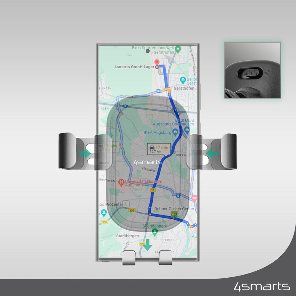 Opplev den perfekte bilholderen som kombinerer stil og fleksibilitet på en unik måte. Med 4smarts Grabber Flex Mobilholder til Bil, glir smarttelefonen din enkelt inn i holderen, og armene lukkes automatisk. Trenger du justering? Det er superenkelt - tilpass holdearmen med bare en håndbevegelse, og med et lett trykk låser du klemmen fast i ønsket posisjon. Og når det er tid for å fjerne smarttelefonen din, er det like enkelt - bare dra lett i klipsen, så åpner den seg. Perfekt for deg som setter pris på letthet og hurtighet.