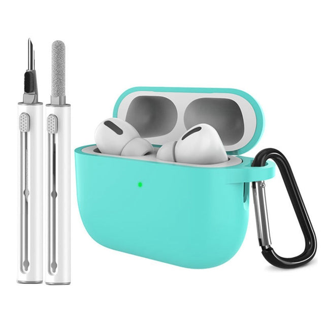 Apple AirPods Pro (3. gen.) Silikon Deksel m. Karabinkrok & Rengjøringspenn - Mint Green