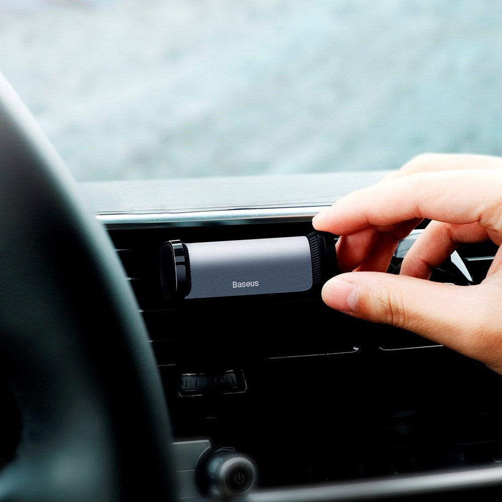 Baseus Steel Cannon Mobilholder for bilens ventilasjonsgitter gir deg et stabilt og sikkert grep om telefonen din, slik at du kan bruke navigasjonen eller høre på favorittmusikken din mens du kjører. Den 360° dreibare holderen og justerbar bredde fra 55 x 84 mm sikrer kompatibilitet med de fleste smarttelefoner.