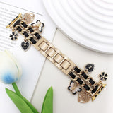 Apple Watch (38 / 40 / SE / 41 / 42mm) Metall Rem m. Kunstskinn & Vedheng - Gull / Svart