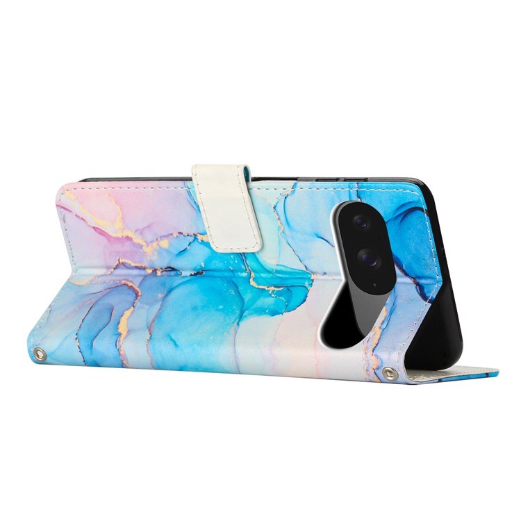Google Pixel 10 / 10 Pro / 9 / 9 Pro Marmor Kunstskinn Flip Deksel m. Stropp - Rosa / Grønn