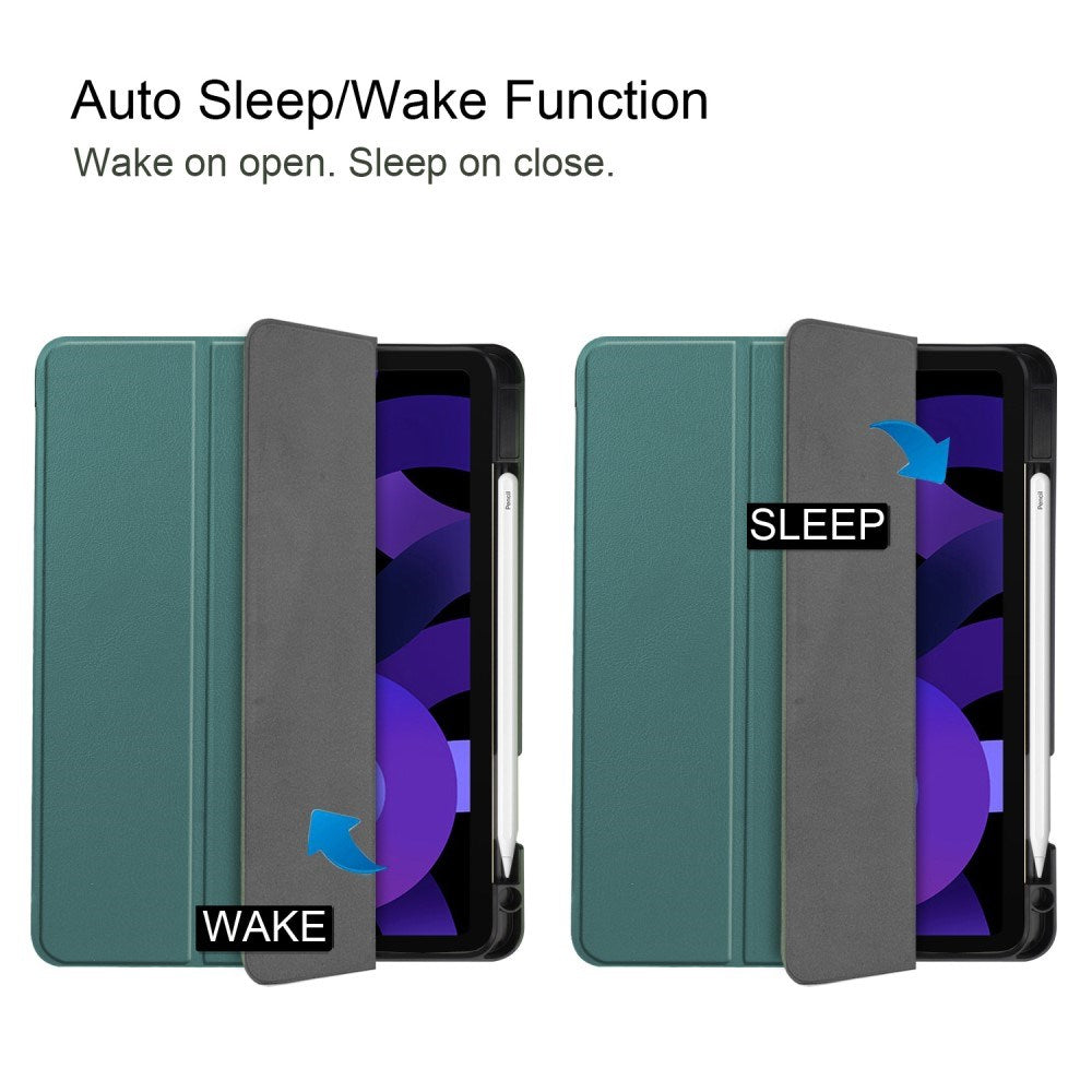 iPad Air 11" (2025 / 2024) Litchi Tri-Fold Skinn Deksel med Apple Pencil Holder - Grønn