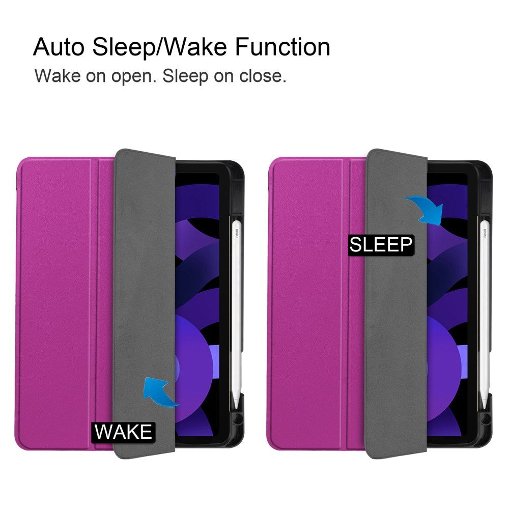 iPad Air 11" (2025 / 2024) Litchi Tri-Fold Skinn Deksel med Apple Pencil Holder - Lilla