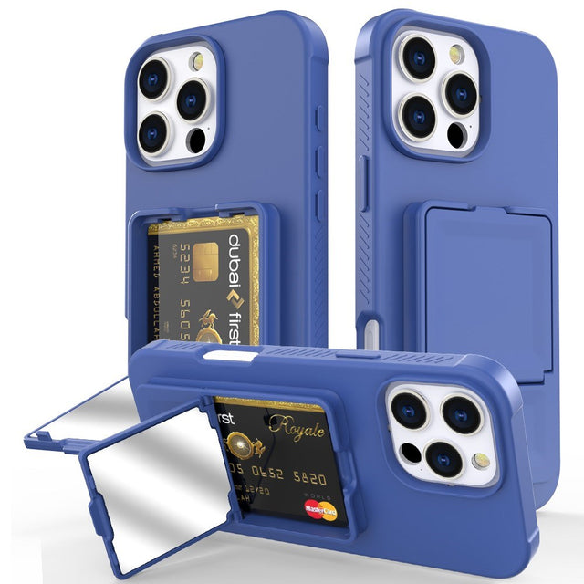 iPhone 16 Pro Max Fleksibelt Plast Deksel med Kortholder & Innebygd Speil – Blå