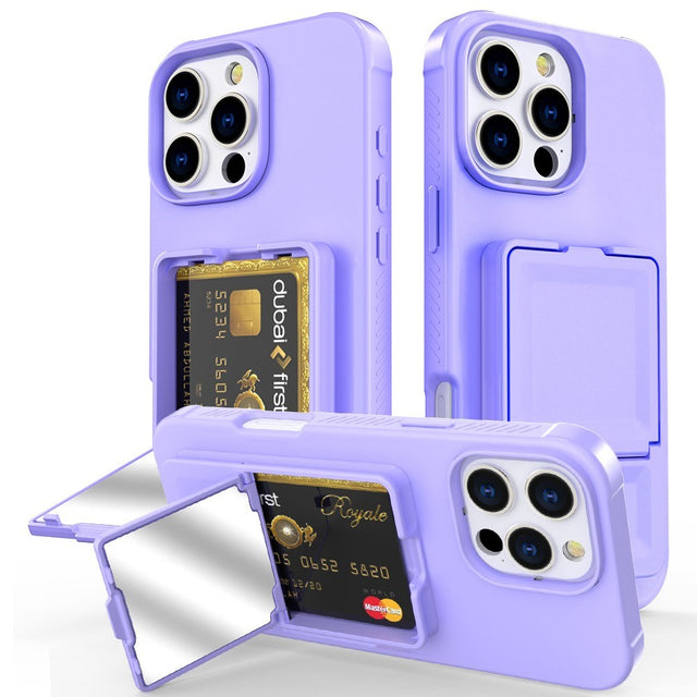 iPhone 16 Pro Max Fleksibelt Plast Deksel med Kortholder & Innebygd Speil – Lilla