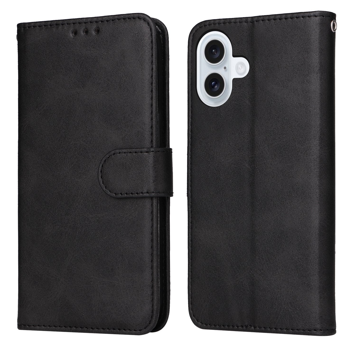 iPhone 17 Kunstskinn Flip Deksel med Lommebok & Stropp – Svart