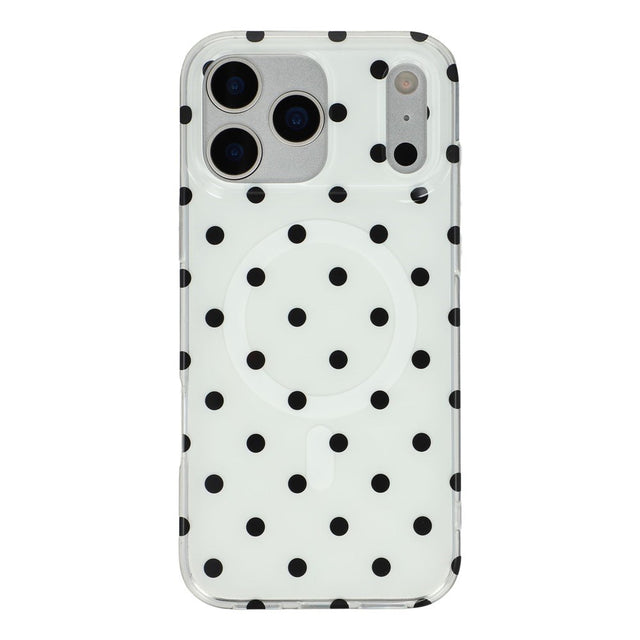 iPhone 17 Pro Max Hybrid Deksel med Polka Design - MagSafe Kompatibel - Gjennomsiktig / Svart