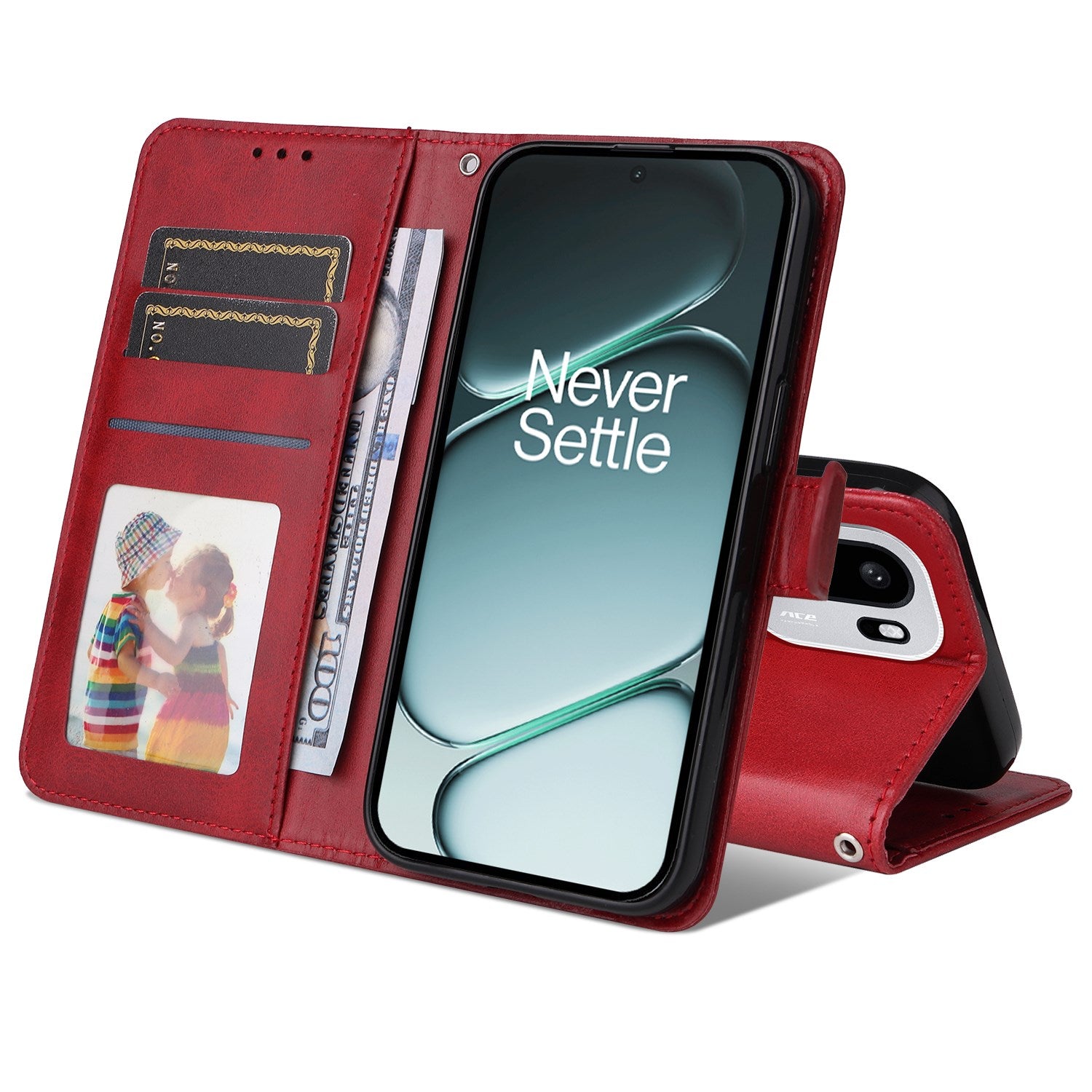 OnePlus 15R Kunstskinn Flip Deksel m. Strop - Rød