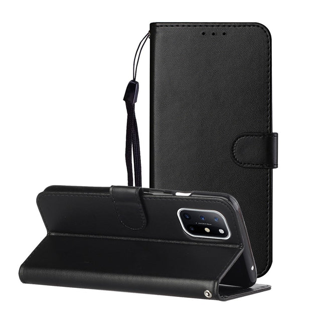 OnePlus 8T Kunstskinn Deksel med Stropp & Kortholder – Svart