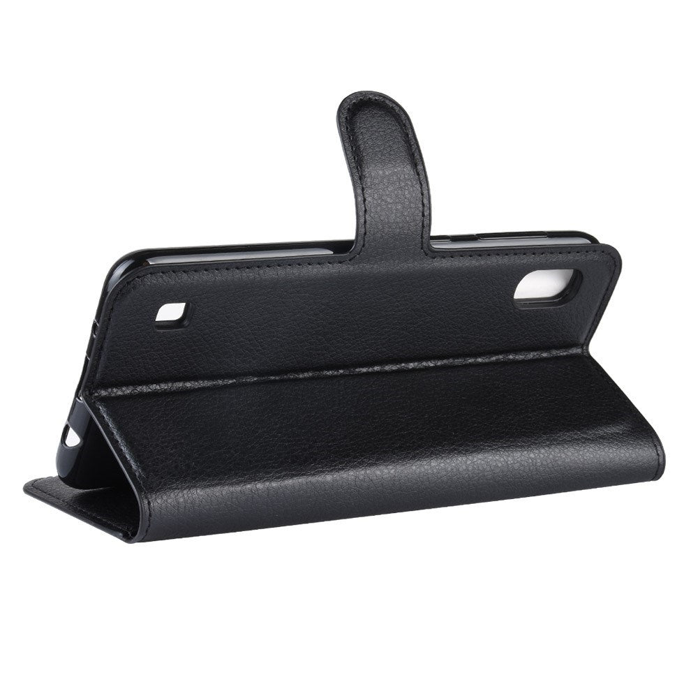 Samsung Galaxy A10 Litchi Kunstskin Deksel med Lommebok - Svart