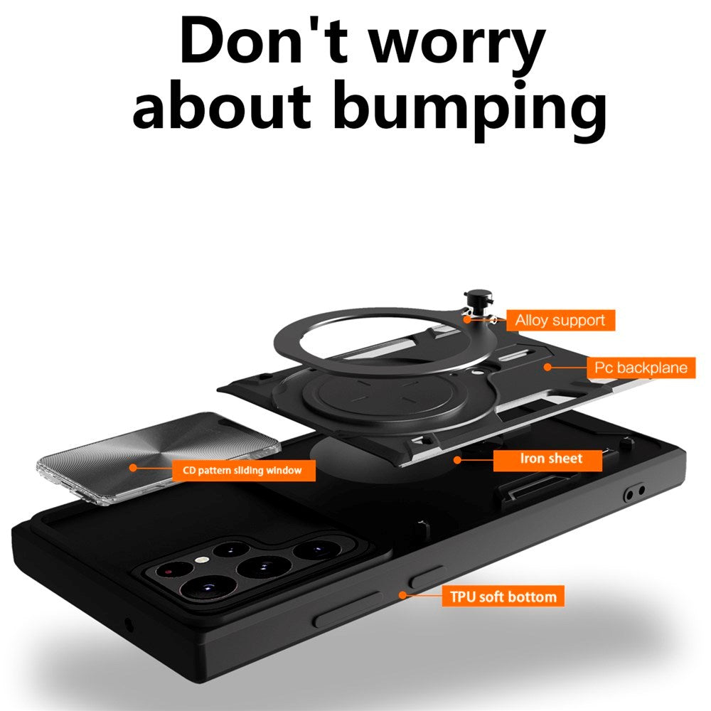 Samsung Galaxy S22 Ultra Håndverker Deksel m. Kickstand & Cam Slider - Sølv