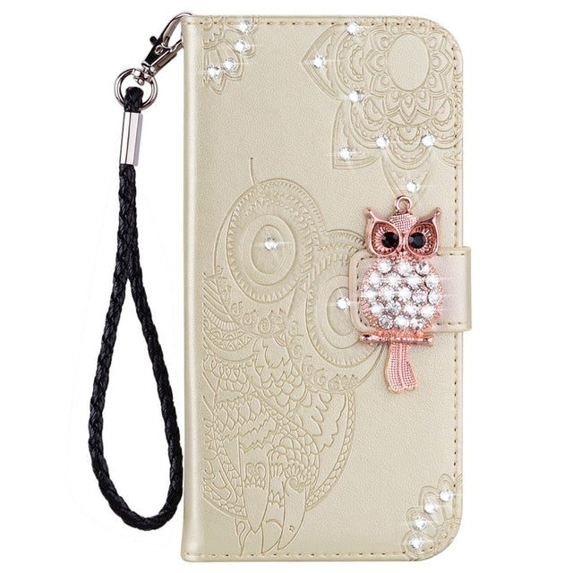 Det unike uglemotivet kombinert med glitrende rhinsteiner gir dekselet et iøynefallende og personlig uttrykk – perfekt for deg som ønsker å skille deg ut med stilfullt tilbehør. Dekselet har også to kortholdere og en lomme for kontanter, slik at du enkelt kan dra ut uten å ta med ekstra lommebok.