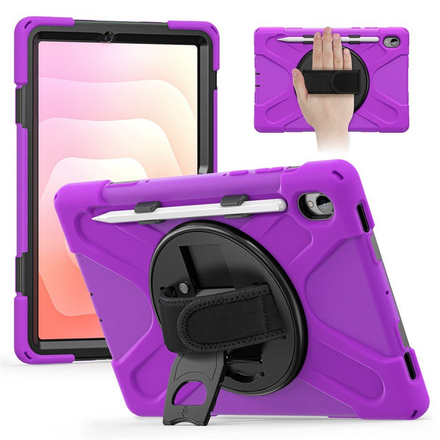 Samsung Galaxy Tab S11 Støtsikkert Deksel med 360 Graders Roterbar Støtte & Borrelåsstropp - Lilla