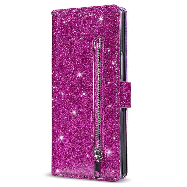 Samsung Galaxy Z Fold7 Glitter Flip Deksel m. Lommebok & Stropp - Lilla