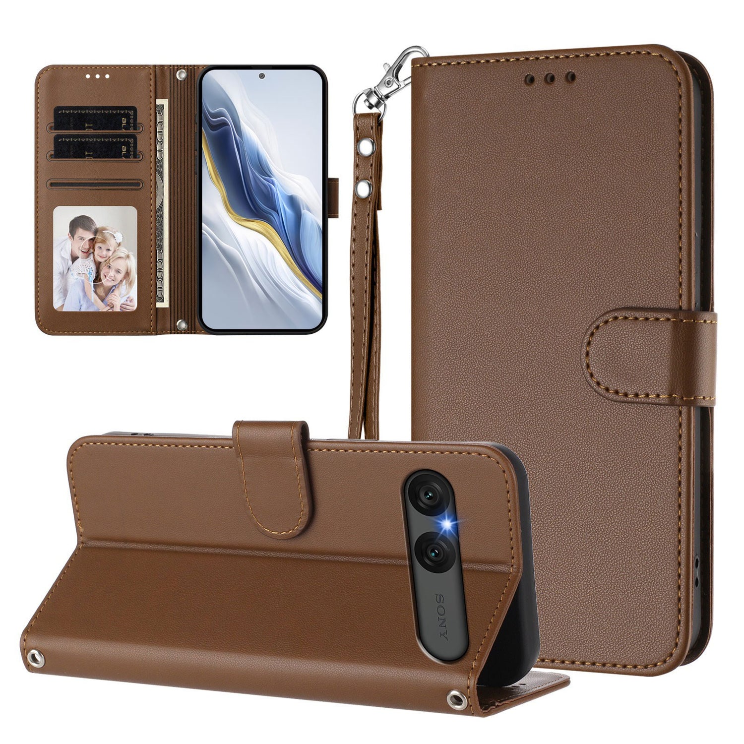 Sony Xperia 10 VII Kunstskinn Flip Deksel m. Kortholder & Stropp - Brun