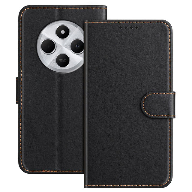 Xiaomi Redmi 14C / Poco C75 Kunstskinn Flip Deksel med Stativ & Lommebok - Svart