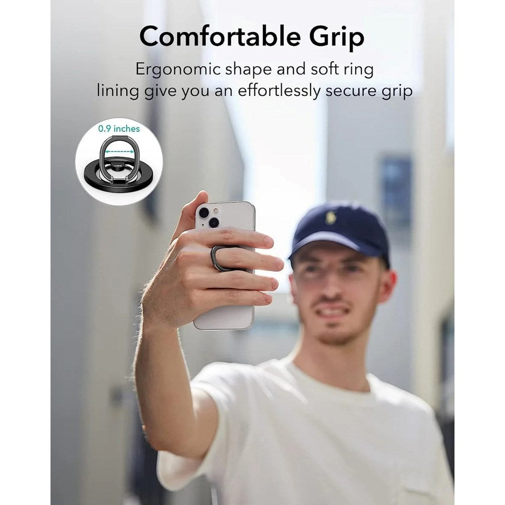 ESR MagSafe Magnetisk Fingerring er designet med fokus på praktisk brukervennlighet. Med sin ergonomiske form og pålitelige grep gir ringen deg muligheten til å holde enheten din trygt og sikkert. Den 360° roterende ringen fungerer også som en kickstand, perfekt for hands-free nytelse av videoer eller bilder, og dens slanke design sikrer stabil posisjonering på ulike overflater.