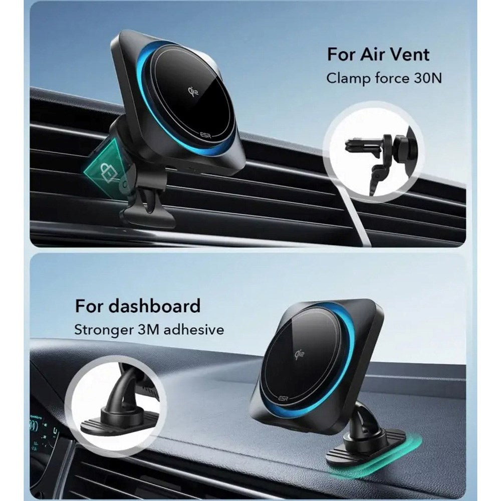 ESR Mobilholder for Bil med CryoBoost Trådløs Lading - Luftventil og Dashbord - MagSafe Kompatibel - Svart er i restordre og vil bli sendt så snart det er på lager igjen.