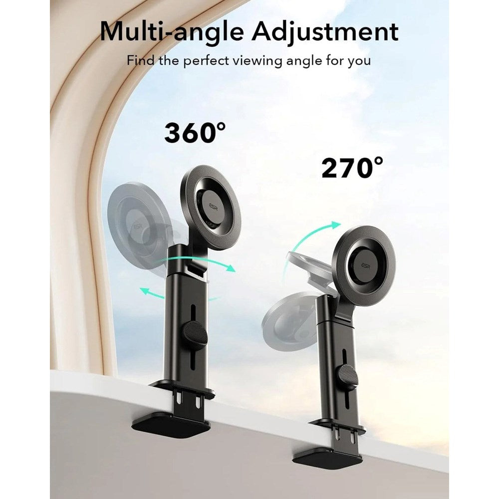 ESR har sørget for å utvikle denne mobilholderen med mange justerings- og vinklingsmuligheter, slik at den kan brukes nesten hvor som helst. Klemmen som brukes til å feste den, kan tilpasses et bredt utvalg av overflater, noe som gjør den utrolig allsidig. Hodet med MagSafe-magneten kan vippes 360° rundt seg selv og 270° fremover og bakover. På den måten kan du feste mobilholderen både på horisontale og vertikale overflater. Med MagSafe-funksjonen har du også muligheten til å plassere telefonen horisontalt eller vertikalt, alt etter hva du ønsker.