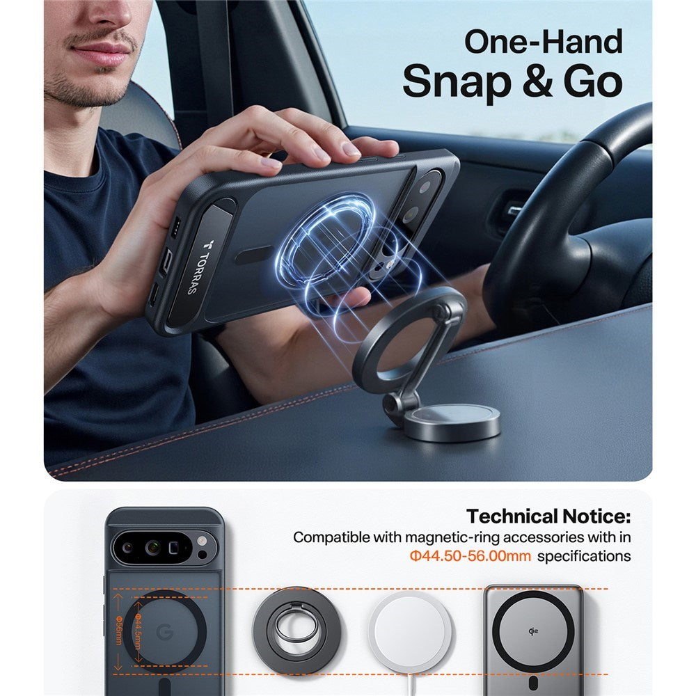 Google Pixel 10 Pro XL TORRAS Ostand L1 Hybrid Deksel m. Kickstand – MagSafe Kompatibel – Svart