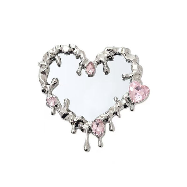 Det lille speilet er formet som et elegant hjerte som ser ut til å smelte, og det er pyntet med rosa steiner. Speilet måler 5 x 5,3 cm og passer fint på alle telefoner.