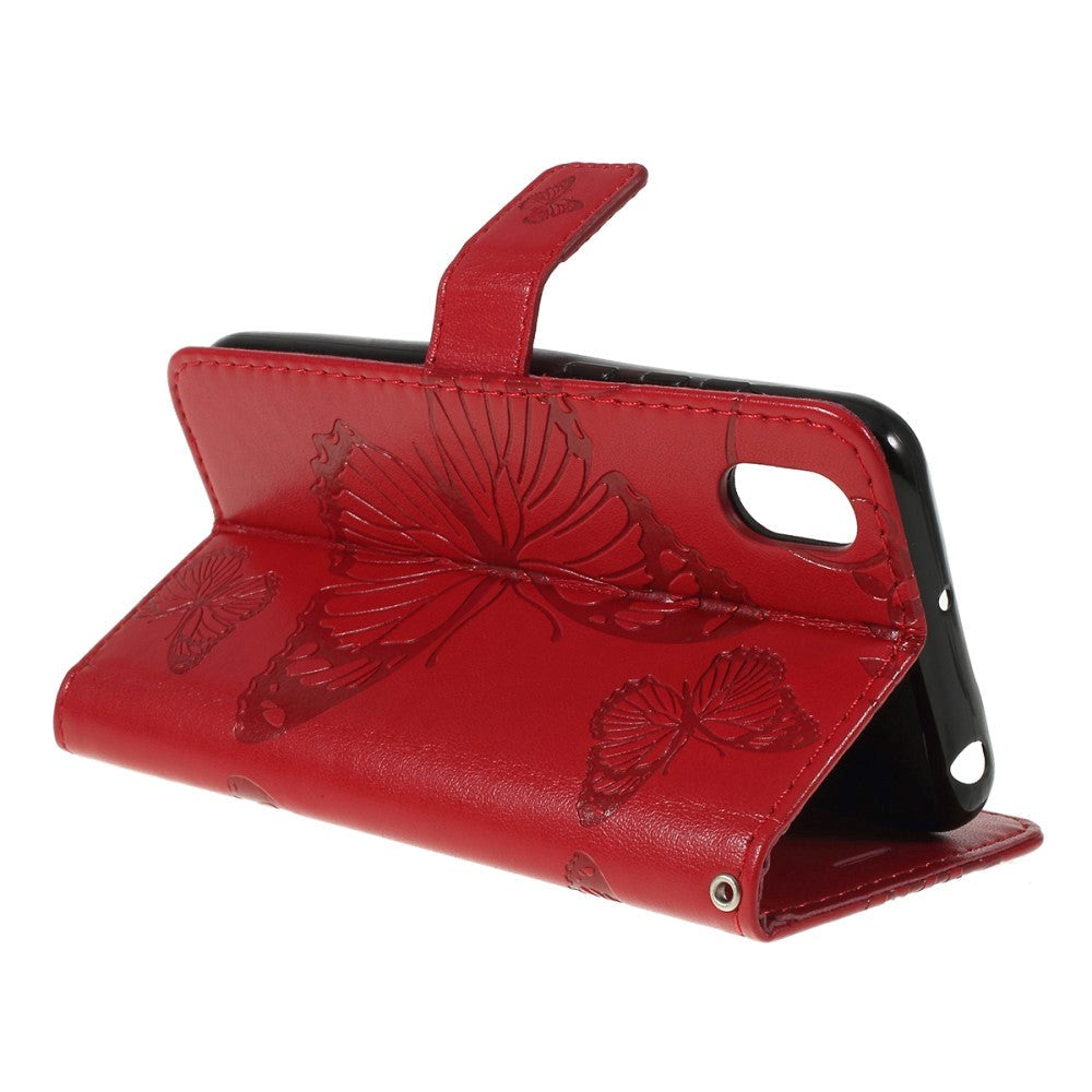 Huawei Y5 (2019) Skinndeksel med Lommebok - Rød Sommerfugl