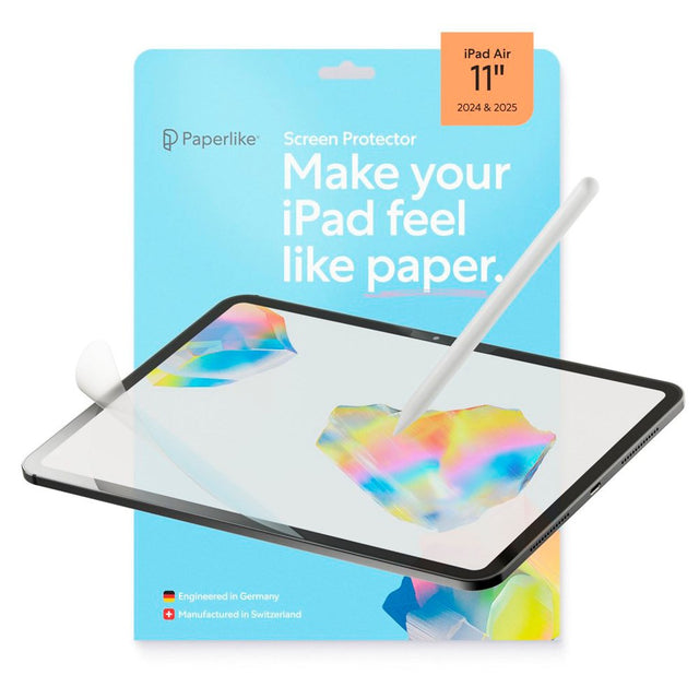 Optimaliser din iPad Air 11" (2025 / 2024) for å skrive, tegne og skape med denne Paperlike 3 Skjermbeskytteren. Skjermbeskytteren gir en autentisk papirfølelse, som gjør håndskrift og illustrasjoner mer naturlige og kontrollerte. Den spesialutviklede Nanodots-overflaten sikrer riktig motstand, slik at strekene dine blir skarpere og skissene mer presise, uten å gå på kompromiss med skjermens klarhet.