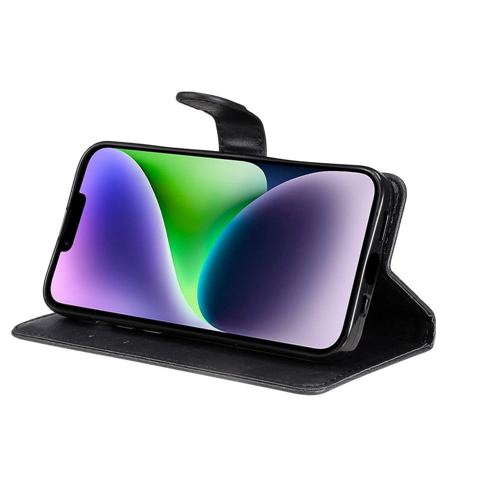 iPhone 15 Plus Flip Deksel i Skinn med Lommebok og Stropp - Svart