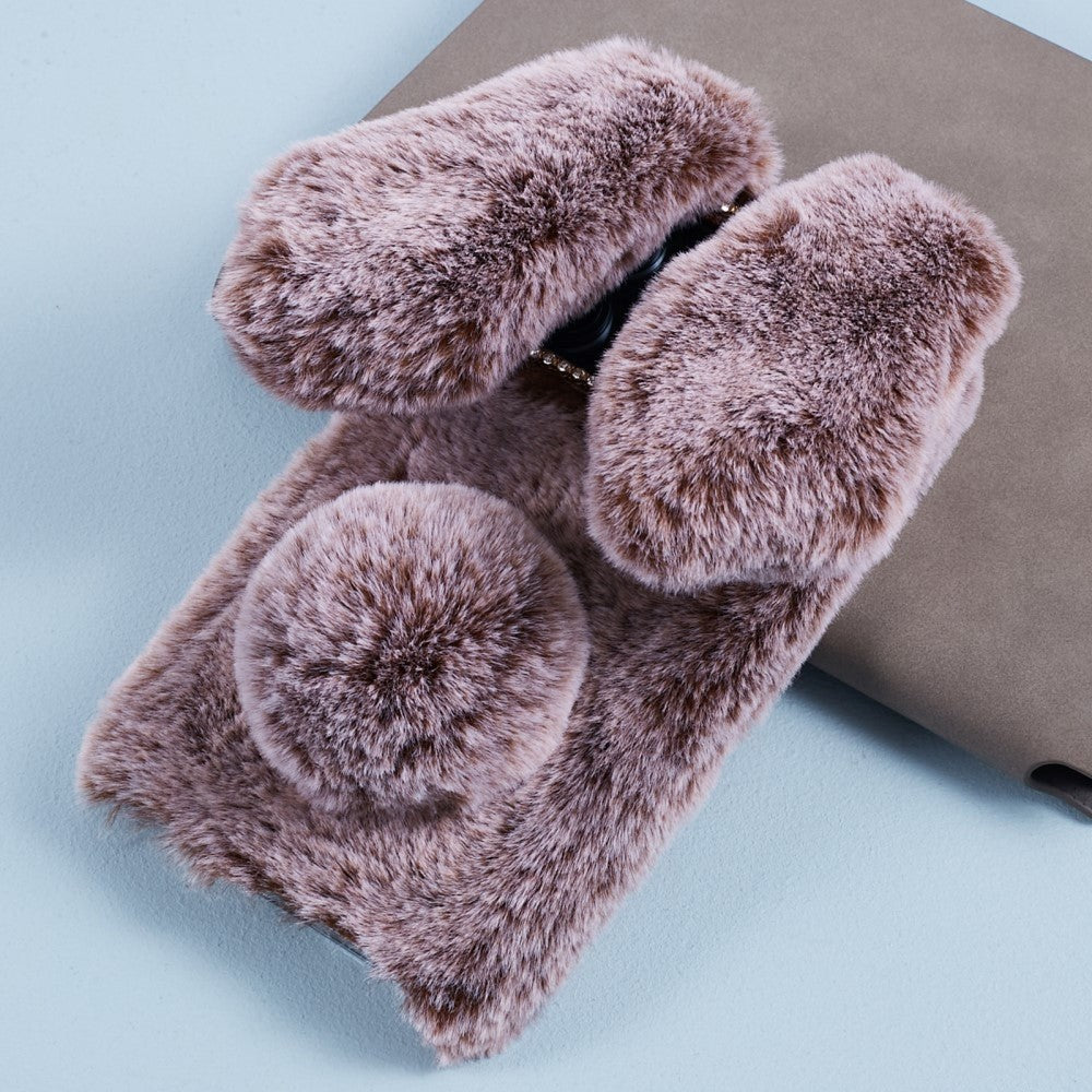 iPhone 15 Pro Fleksibelt Plastbakdeksel m. Pels - Kaninører - Brun
